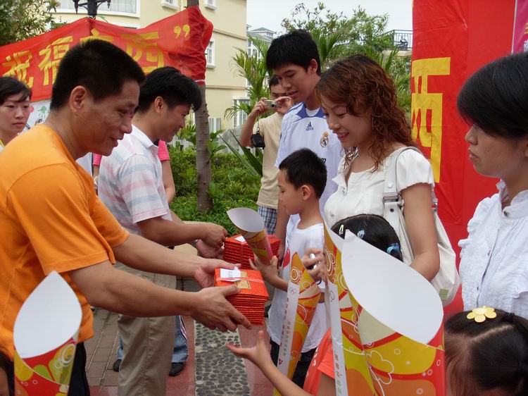 距離奧運(yùn)會(huì)還有54天,人們都沉浸在等待的幸福當(dāng)中。隨著奧運(yùn)會(huì)的日益臨近,中房·翡翠園深入南寧市及周邊六縣部分幼兒園、小學(xué),開展了一系列迎接奧運(yùn)的活動(dòng),為迎接即將到來的北京奧運(yùn)會(huì)增添了一份喜慶。同時(shí),孩子們還制作卡片留言,為地震災(zāi)區(qū)的人們祈福,祝他們?cè)缛罩亟覉@。